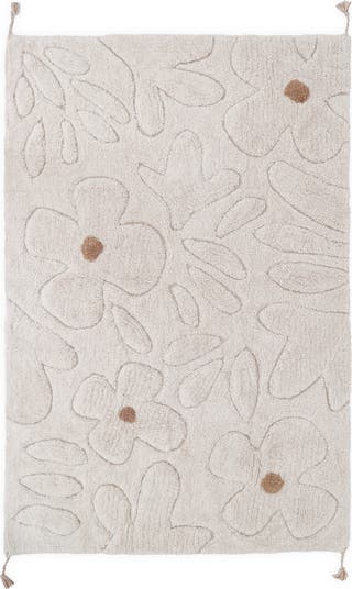 "Transform your child's bedroom into a haven of peace with this machine-washable, OEKO-TEX-certified cotton rug. Designed with care, this rug combines aesthetics and practicality, perfect for a safe and healthy environment for your little ones. Its natural, undyed color offers an authentic, uncluttered look. Decorated with delicate, tone-on-tone floral motifs, created with variations in levels in the carpet's velvet, adding an elegant, refined touch.Soft and comfortable, ideal for playtime and moments of relaxation. Each corner of the rug is adorned with a small braid, adding a charming, handcrafted note. Machine-washable, for easy cleaning and regular maintenance. Supplied with an optional slip mat. This carpet pad guarantees excellent grip on the floor, preventing the mat from slipping and ensuring your children's safety at play. OEKO-TEX certified, it complies with the strictest standards for harmful substances, ensuring a healthy environment for your children. This rug is not only an aesthetic addition to your child's room, but also a responsible and practical choice for parents. Give your child a warm and safe place to play and rest with this natural cotton rug. Nattiot - registered design" © Nattiot