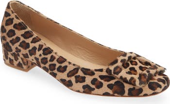 A chic animal print emboldens a genuine calf-hair pump featuring a sophisticated square-toe silhouette with a wrapped buckle and low block heel.