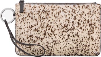 Accessorize your look in contemporary-chic style with this slim clutch fashioned from spotted calf hair.
