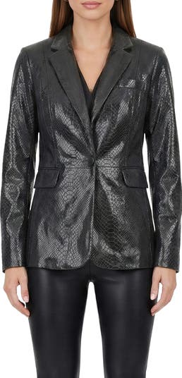 Elevate your wardrobe with the Genuine Metis Suede Python Printed Single Breasted Blazer. Crafted from luxurious suede, its striking python print adds a bold, sophisticated edge to any outfit.