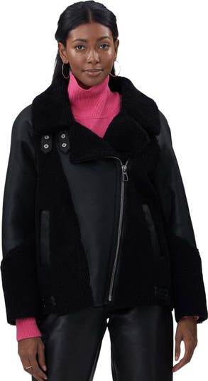 This zip moto jacket crafted from Genuine Shearling combines edgy design with soft, insulating warmth for a bold yet comfortable statement.