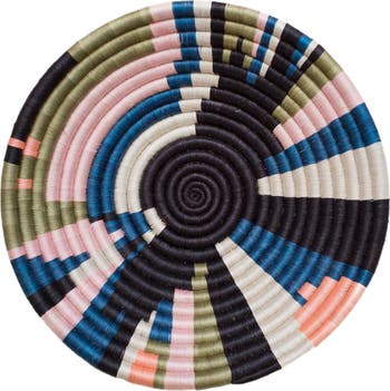 One of our best-selling signature plateaus baskets made in Rwanda with a one-of-a-kind handwoven design. 12" W x 3" H Hand dyed in a variety of colors Made from strands of sisal wrapped around bunches of sweetgrass Includes a loop on the back for hanging Made from locally sourced fibers The ideal housewarming gift and the perfect shape and size to be used as a fruit basket, hung in a cluster on a gallery wall, or simply placed as an accent piece in your favorite nook around the house or office.