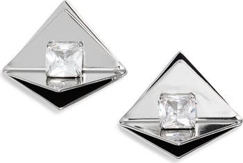 A beautiful blend of futuristic style and classic Art Deco influence brings together the brilliant look of these drop earrings that are meant to make a statement.