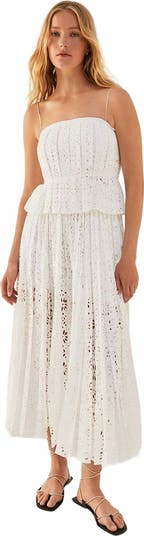 - A custom-developed lasercut pattern covers this crisp pleated camisole with fine spaghetti straps, designed to be worn with or without its matching skirt.