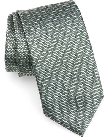 Small, neat geometries bring understated distinction to this lustrous Italian-silk tie that complements formal and semiformal attire.
