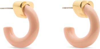 A petite heart brings sweet character to these enamel-and-goldtone huggie hoop earrings finished with a polished shine.
