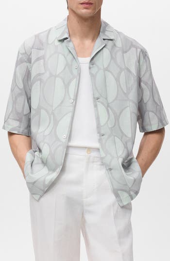 MANGO Geo Print Camp Shirt, Main, color, Sky Blue
