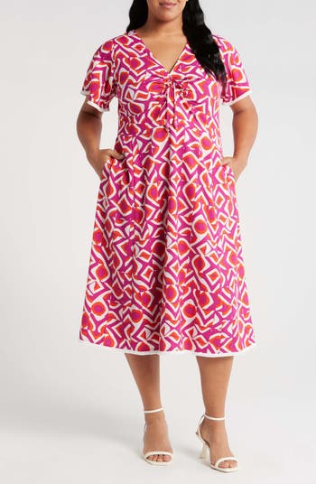 A lively print and a flicker of fringe animate a colorful dress cut to a versatile midi length.