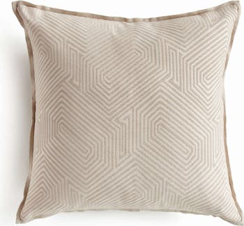 The indoor pillow that lives beautifully outdoors. Enjoy the upscale luxury and durability of Jacquard. With a woven light khaki tone, it plays well with any palette. This pillow is weather resistant and responsibly made. Filled with 100% recycled fibers.