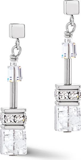 GeoCUBE Iconic Nature earrings silver-white: timeless sophistication Add a touch of timeless elegance to your look with the GeoCUBE Iconic Nature earrings in silver-white. These earrings combine the cool shine of stainless steel with clear, colourless crystals and unique, cracked rock crystal cubes. They are the perfect choice for anyone looking for a subtle yet sophisticated piece of jewellery that will enhance any occasion.