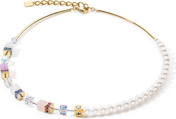 Two stylistic elements come together to create a striking new design: GEOCUBE is given the pearl treatment. Classic GEOCUBES in delicate pastel shades made from sensual rose quartz, amazonite, delicate amethyst and shimmering rock crystal go beautifully with elegant pearls and make this golden creation unique. Lovingly handcrafted at our studio.