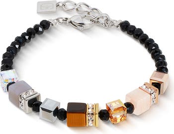 Naturally beautiful and elegant: the bracelet from the GeoCUBE collection combines warm gemstones such as pink aventurine, agate and tiger's eye with sparkling crystals and stainless steel in gold, rose gold and silver tones. The precisely handcrafted composition stands for quality and style made in Germany. Perfectly coordinated with the matching necklace or earrings from the same series - for an all-round stylish look.