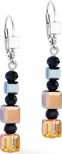 The earrings from the GeoCUBE series set stylish accents with their clear, cubic shape. The harmonious combination of rose, gold and black creates an elegant effect both day and night. Embellished with sparkling crystals and Swarovski elements, they are an expression of modern elegance. Crafted by hand - a perfect match for the necklace and bracelet from the same COEUR DE LION collection.