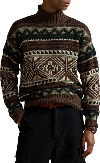 Enjoy the soft and fuzzy feel of this cotton-and-wool blend pullover that has a folkloric Fair Isle design that's perfect for sweater weather.