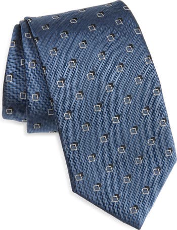 Neat geometric elements bring understated distinction to a tie crafted from Italian silk jacquard to add a polished finish to any formal or semiformal look. This tie pairs well with smoother fabrics, but there's always room for mixing patterns and textures to define your personal style.