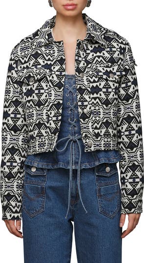 Complete your look with the unmistakable Southwestern style of this geo-patterned trucker jacket in a perfectly cropped length.