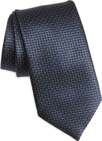 Small, neat geometries bring understated distinction to a tie crafted from Italian silk jacquard to add a polished finish to any formal or semiformal look. It pairs well with smoother fabrics, but there's always room for mixing patterns and textures to define your personal style.
