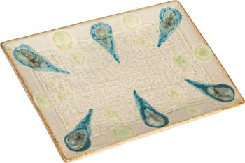This Geometric Stoneware Platter is a testament to the beauty of cultural convergence. The rectangular platter, adorned with intricate geometric patterns in shades of green and blue, reflects a fusion of traditional motifs and contemporary design. It's a piece that invites admiration and discussion, perfect for serving tapas, hors d'oeuvres, or simply as an ornamental accent in a well-curated home. It measures 9.25 inches in length and 6.25 inches in width, offering a generous area for culinary presentation or decorative display. The platter's generous size and eye-catching design make it a versatile addition to any eclectic collection, ready to transport guests on a visual journey across the globe with every use. Whether used daily or reserved for special gatherings, it's a celebration of global aesthetics and the joy of sharing.