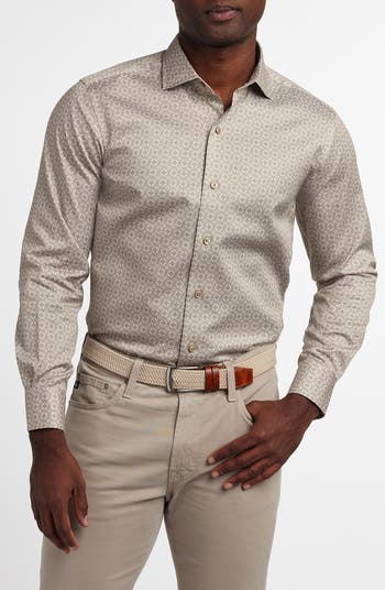 Subtly textured cotton patterned in geometries brings elevated detailing to a dress shirt designed with a simple French placket for a smart, streamlined look. Crafted with a midweight feel, it makes a versatile, all-season addition to your semiformal wardrobe.