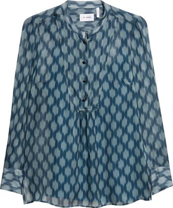 The American-based label continues to build out your rotation of capsule-wardrobe classics with this whisper-light silk-georgette top patterned with a tessellated geometric print inspired by chain links.