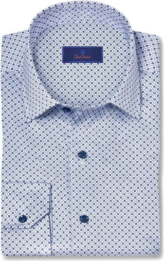 Subtly textured cotton dobby patterned in a smart geometric print brings elevated detailing to a sport shirt designed with a simple French placket for a smart, streamlined look. Crafted with contrast buttons and a midweight feel, it makes a versatile, all-season addition to your semiformal wardrobe.