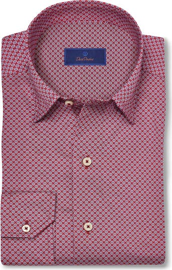 Subtly textured cotton dobby patterned in a smart geometric print brings elevated detailing to a sport shirt designed with a simple French placket for a smart, streamlined look. Crafted with pearly buttons and a midweight feel, it makes a versatile, all-season addition to your semiformal wardrobe.