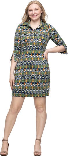 Indulge in the beauty of our striking Green Geometric Print Three Quarter Sleeve Collar Mini Dress. This stylish mini dress boasts a timeless green geometric pattern that ensures you stand out. The three quarter sleeves and elegant collar add a touch of sophistication, while the mini length keeps the look fun and playful. Ideal for both a night out and a fashionable daytime outing, this dress effortlessly combines comfort and style. Complete your look with your favorite heels or boots and make a statement wherever you go with this versatile and trendy piece.