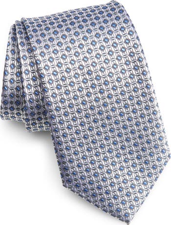 Fashioned from lustrous silk jacquard, this geometric tie brings dapper distinction to formal and semiformal attire.