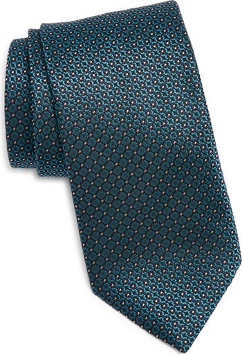Textured geometries bring smart, neat detailing to this hand-finished tie fashioned from lustrous Italian-silk jacquard, bringing polish and distinction to formal and semiformal attire.