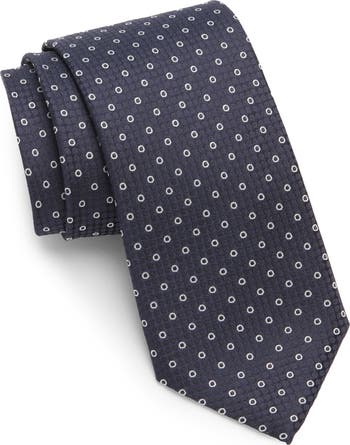 Fashioned from lustrous Italian-silk jacquard, this hand-finished tie with a neat geometric pattern brings dapper distinction to your semiformal attire. It pairs well with smoother fabrics and solid colors, but there's always room for mixing patterns and textures to showcase your personal style.