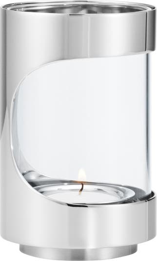 Copenhagen-based designer Maria Berntsen imbues your living space with warmth and ambiance with this hurricane-style candle holder crafted from sleek stainless steel and glass.