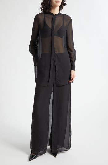 Put pants into the elegant evening equation with a panelled pair mostly made from airy georgette.