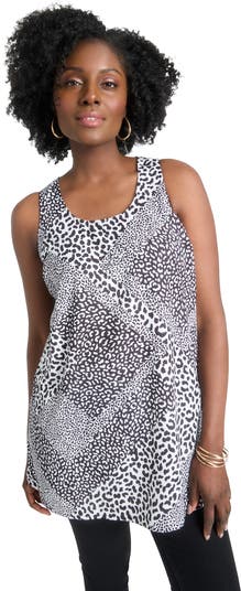 When simply chic is the goal, toss on this sleeveless pullover tunic. Wear alone or layer with the matching georgette button front mega tunic. Scoop neck and single-button closure. Relaxed shape, straight hem.