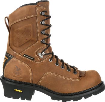 The Georgia Boot Comfort Core Logger Waterproof Work Boot was designed to offer rugged durability and exceptional comfort. Georgia Boot put comfort in the name of the product because it's such a big part of what this logger boot does. The men's boot has the patented CC7 Comfort Core insole, which consists of a three-layer comfort system. The first layer of polyurethane cushions and absorbs shock. The second layer of polyurethane gives you heel and arch support. Finally, the third layer is memory foam for customization and comfort. This comfortable work boot also features a heel-stabilizing Counter Lock, a durable double-ribbed tempered steel shank for arch support, and a high-performance mesh lining for air circulation. Crafted from the highest-quality materials, this footwear has a rubber Vibram sole that resists slips and oils. welt construction gives this full-grain leather boot durability that can hold up to years of tough wear. It features milled nickel hardware. The premium nylon laces are guaranteed for life. The guarantees don't stop there. The Georgia Waterproof System promises to keep your feet dry through days of rain, mud and standing water. This is a nine-inch logger boot with a removable brush guard kiltie. It's great for keeping twigs and brush out of your laces and boot. You deserve a tough work boot that's made from the best materials and will give you the comfort to work all day. Georgia Boot Comfort Core Logger. Rugged Never Felt So Good.