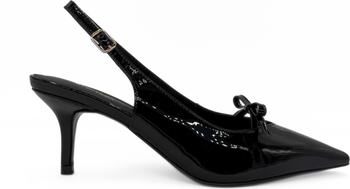 Poised, polished, and perfectly pointed- crafted in glossy patent leather, this slingback kitten heel brings vintage romance to your modern-day wardrobe. The delicate bow detail and softly arched silhouette strike the balance between flirtation and form, while the adjustable strap ensures she stays with you from sunrise to soirée.