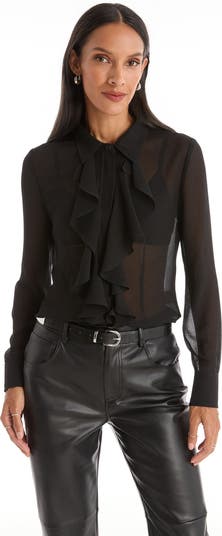 Romantic femininity meets modern tailoring - the Georgia Blouse is the incredible statement piece you've been searching for. Designed with front ruffle details dancing across a relaxed button-down, this top features a front-darting detail for a slimming effect. Perfect for layering, this dazzling style is a must-have.
