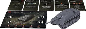 WORLD OF TANKS EXPANSION: GERMAN JAGDPANTHER - The German Jagdpanther takes the mobility of the legendary Panther and mounts a bigger gun in a stealthy Tank Destroyer package. Use Markus Theissen’s Intuition perk or the 10.5cm PaK L/52 Gun to boost Initiative, and take Sixth Sense to ensure this Assault Gun isn’t flanked. Inside the Jagdpanther Expansion Pack, you will find a highly detailed, assembled, pre-primed plastic Jagdpanther tank miniature and tank card. Your tank can be further personalized to match your requirements using the five crew, module, and upgrade cards included. WOT: The World of Tanks: Miniatures Game is an easy to learn, quick play, small scale tabletop game. You take command of a Tank Platoon, seeking to destroy your opponent’s tanks and secure victory. It is a fast and furious, do-or-die game – In half an hour you can pick your tanks and crew, upgrade them to your specifications, defeat your enemy (or die trying), and be ready for the rematch!