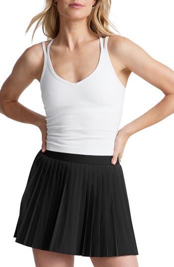 This strappy tank is made from stretchy performance fabric with an ultrasoft feel and moisture-wicking comfort. A built-in shelf bra provides support during light workouts.