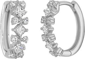 Twinkling diamonds alternate in size and shape as they stream down the front of these handcrafted 18-karat gold hoop earrings.