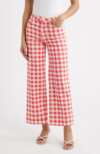Cheery gingham checks create a summery cool look in these high-rise, ankle-grazing wide-leg jeans made from stretch-kissed denim.