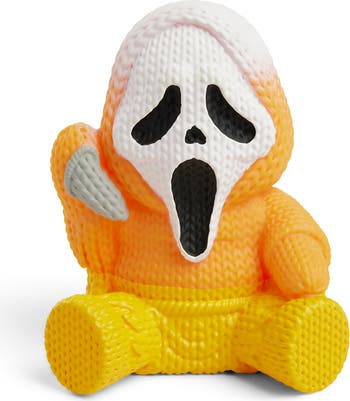 Approximately 5 inches tall and perfect for display or play Our friendly robots designed this figure to look like knit fabric at a glance, but it’s actually made of vinyl Signature vinyl tag on the figure, complete with barcode decal to resemble a sewn-in tag This candy corn scented Ghost Face never looked so unique! LIMITED EDITION - ONLY 1,008 UNITS