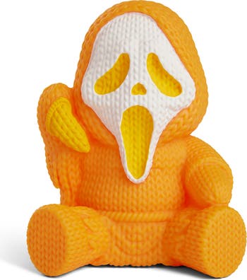 Approximately 5 inches tall and perfect for display or play Our friendly robots designed this figure to look like knit fabric at a glance, but it’s actually made of vinyl Signature vinyl tag on the figure, complete with barcode decal to resemble a sewn-in tag Pumpkin orange colored Ghost Face never looked so unique!