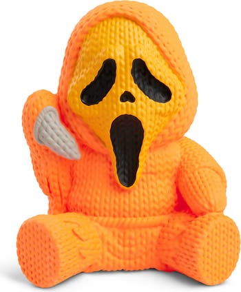 Approximately 5 inches tall and perfect for display or play Our friendly robots designed this figure to look like knit fabric at a glance, but it’s actually made of vinyl Signature vinyl tag on the figure, complete with barcode decal to resemble a sewn-in tag Pumpkin orange colored glow in the dark Ghost Face never looked so unique! What is Handmade by Robots? Ambulatory biological units like yourselves require warmth and soft embraces. We robots know not of such things. Our best approximation is thus enclosed the appearance of interwoven organic fibers into recognizable characters from your pop culture, though made of solidified polymers. Our research indicates they would be given and received as gestures of friendship and love. May your acquaintances find value in such meaningless activities.