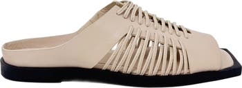 Exquisitely crafted flat slide sandal, adorned with soft leather lacing details. Each pair is a testament to the skill of our artisans, enveloping your feet in the luxury of memory foam cushioning. Designed to fit all foot widths and insteps seamlessly, thanks to a discrete elastic hidden inside. The extended welt offers robust protection to the upper, ensuring these sandals stand the test of time while providing exceptional grip. Experience unparalleled comfort as the premium leather gently molds to your foot, highlighted by a chic, modern squared-off toe.