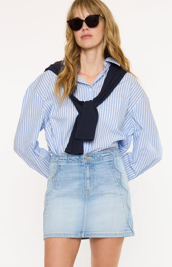 This skirt is the perfect for any occasion. With stud embellishments at the front and back pockets that let it stand out. Meant to sit slightly below your belly button and end mid-thigh. Features a single button closure, zipper fly, 5-pockets and a released hem.