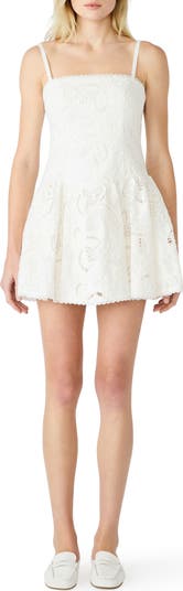 Swirling ladder stitching adds breathable charm to this breezy cotton dress cut in a leggy length and finished with flared skirt.