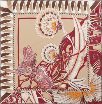 Archival motifs take flight on this hand-finished Italian-silk scarf that doubles your styling options as it reverses between two heritage patterns.