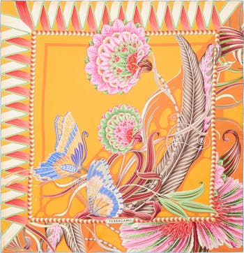Archival motifs take flight on this hand-finished Italian-silk scarf that doubles your styling options as it reverses between two heritage patterns.