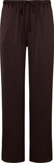 This luxurious silky wide leg pant in a deep raisin hue offers effortless sophistication for any occasion. Crafted from smooth hammered satin, it features a comfortable pull-on design with a refined drawstring closure for a perfect fit.