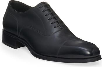 Impeccable craftsmanship shines though on this cap-toe oxford handmade of burnished calfskin leather using Blake construction that offers a more flexible sole.
